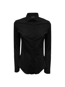 Camicia must have del guardaroba quotidiano, realizzata in100% cotone, presenta una vestibilità slim e gemelli placcati oro inseriti ai due polsi.